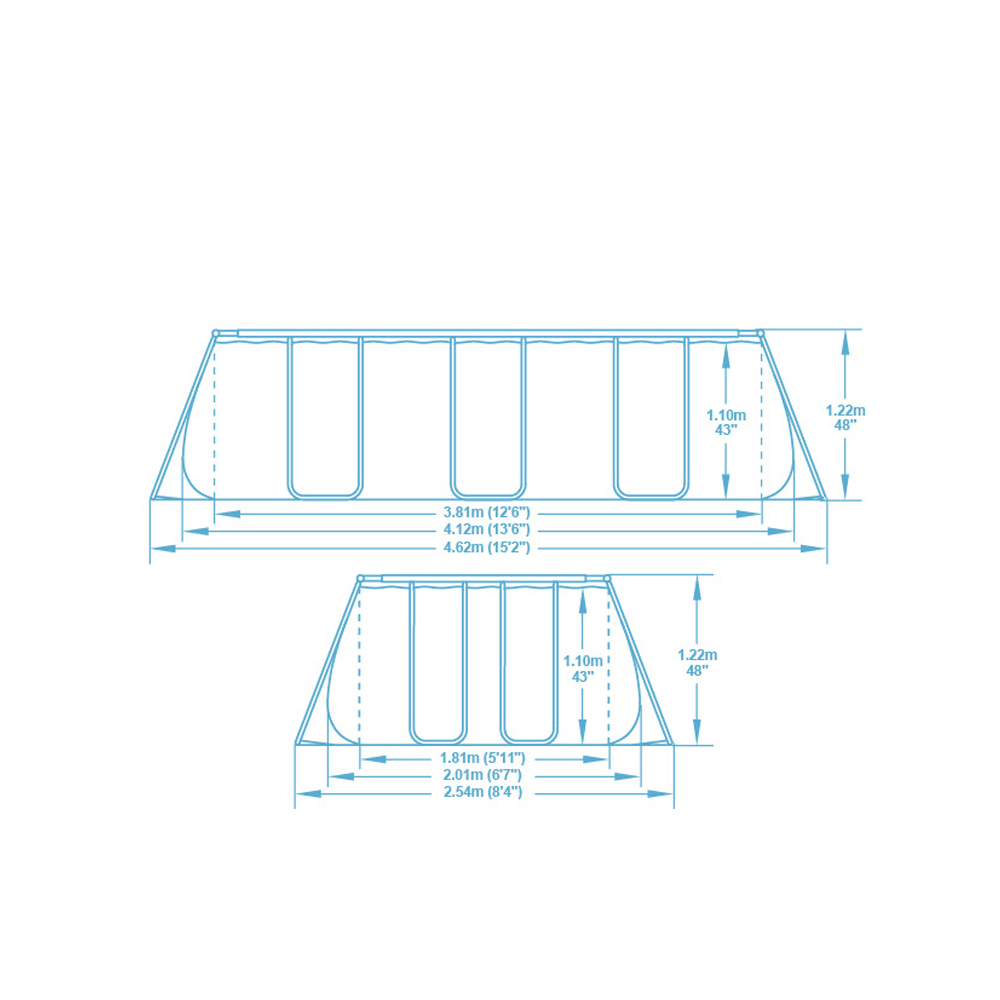 A fémvázas medencék anyaga 3 rétegű PVC, az aljuk szilárd. Összeállításuk egyszerű, elég összeszerelni a vázat és a medence azonnal feltölthető. Az erős, rugalmas szerkezet miatt gyerekes családoknak kifejezetten ajánlott. A kis képekre kattintva a medence nagyobb méretben megtekinthető.