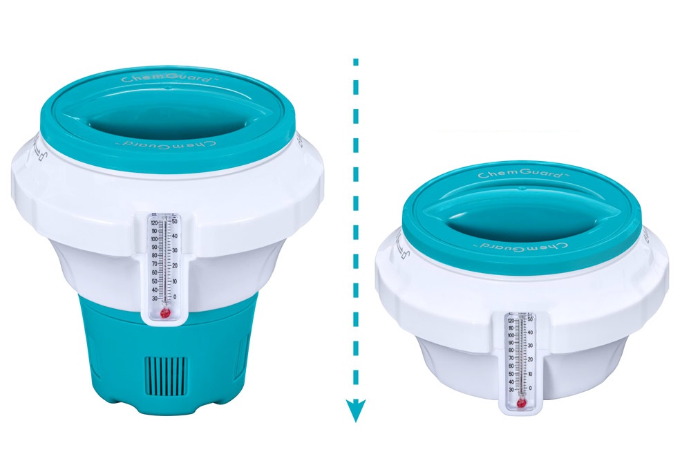 A vegyszeradagoló a medence felszínén mozog, így elősegíti az adagolás egyenletességét. A vezérlőrács mozgatásával szabályozható a behelyezett tabletták oldódási sebessége. A klór fokozatos felszabadulása biztosítja a medence folyamatos fertőtlenítését az egész szezonban.