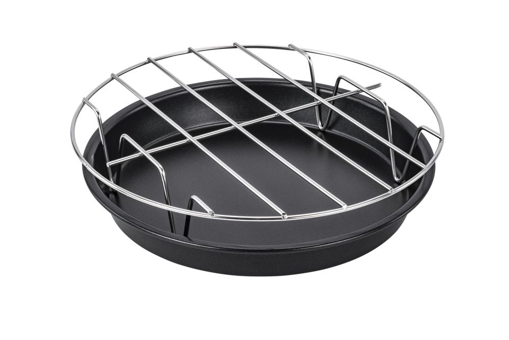A rozsdamentes acél grillrács és a pizzasütő serpenyő a forrólevegős fritőzhöz kompatibilis a DIGITAL 3,5 l-es AF602 modellel.