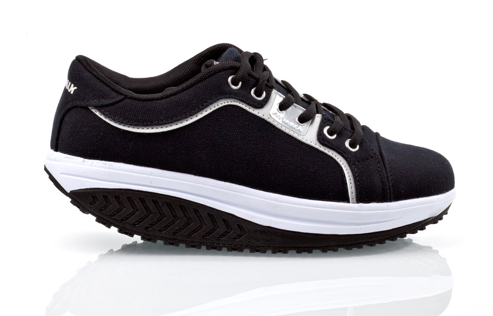 A Fit Walk vászoncipő speciálisan kialakított, ergonomikus talppal rendelkezik, amely enyhe instabilitást okoz, emiatt olyan járást biztosít, mintha a viselője mezítláb homokban járna.
