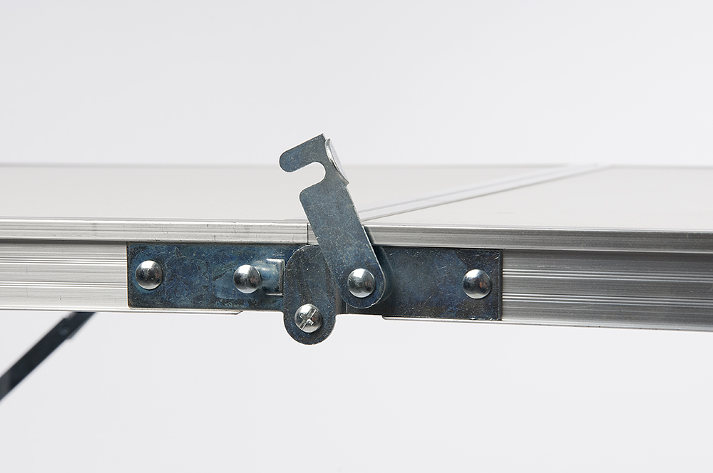 A könnyű és mégis stabil, összecsukható, alumínium kempingasztal. Kempingezéshez, sátorozáshoz szinte nélkülözhetetlen. Összecsukva az asztallapot koffer keletkezik, amelyben az asztal többi része kényelmesen elfér. Könnyen tisztítható, ellenálló, nehezen karcolódik.