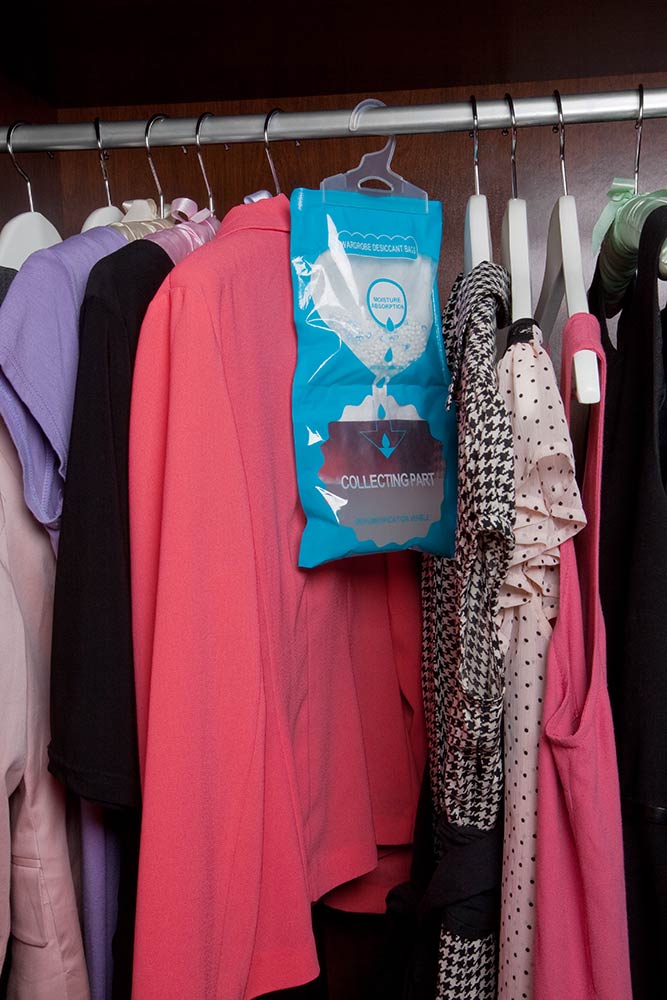 A felakasztható páramentesítő megszünteti a nedvességet a lakásban, házban, pincében, garázsban stb. A páramentesítő ideális a nem rendszeresen szellőztetett helyiségekben, de akkor is, amikor a fűtés leáll és a páratartalom megnő. A műanyag zacskóban szemcsék vannak, amelyek elnyelik a nedvességet a levegőből, ami a zacskó alján marad. Amikor a zacskó megtelt, dobja ki az abszorpciót, és helyezzen be egy újat.