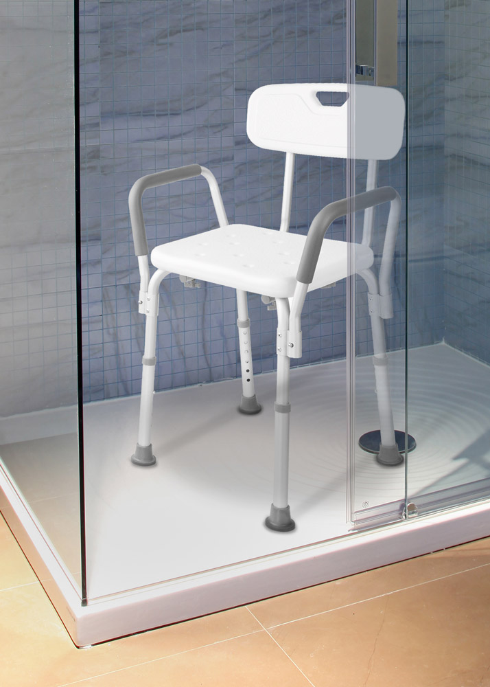 A fürdőszobai szék állítható magassággal és kartámlákkal rendelkezik. Biztonságosabbá és kényelmesebbé teszi a tisztálkodást időseknek, gyerekeknek, mozgásban korlátozottaknak. Higiénikus ülőkéje csúszásmentes felülettel rendelkezik, a háttámla és kartámlák biztonságosabbá teszik a felállást és leülést.