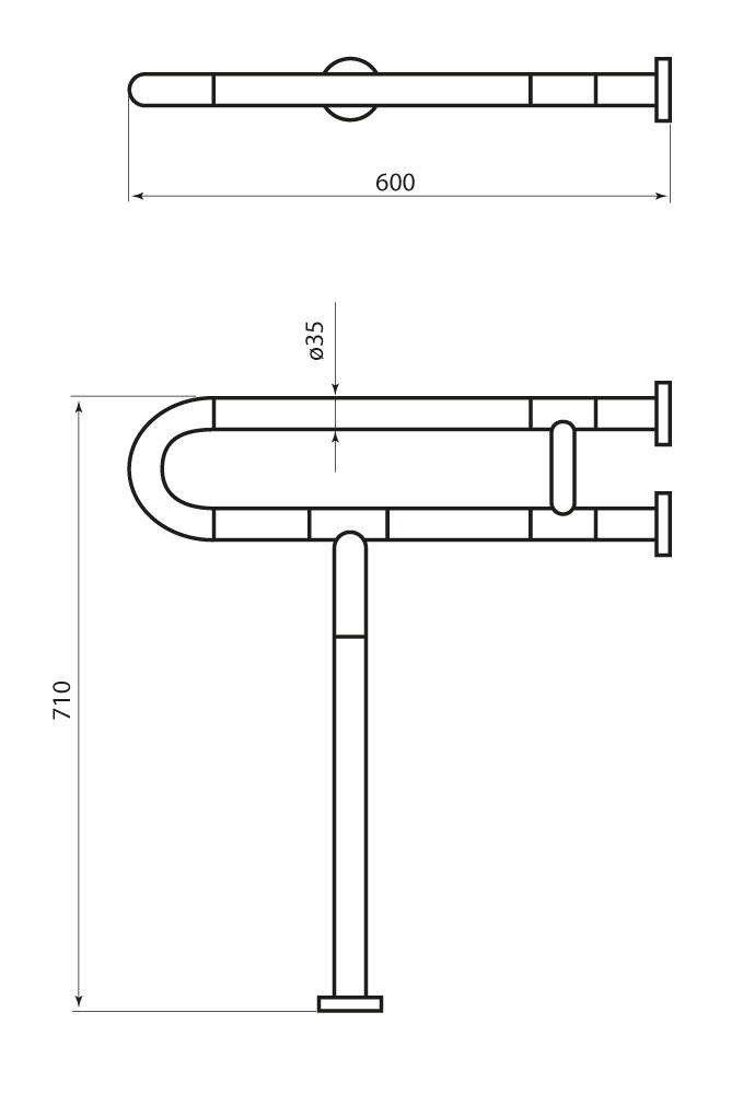 Az U alakú, támasztólábbal ellátott kapaszkodó ideális segítség idősek vagy mozgáskorlátozottak számára. A kapaszkodó sokkal könnyebbé teszi a WC, bidé stb. használatát.