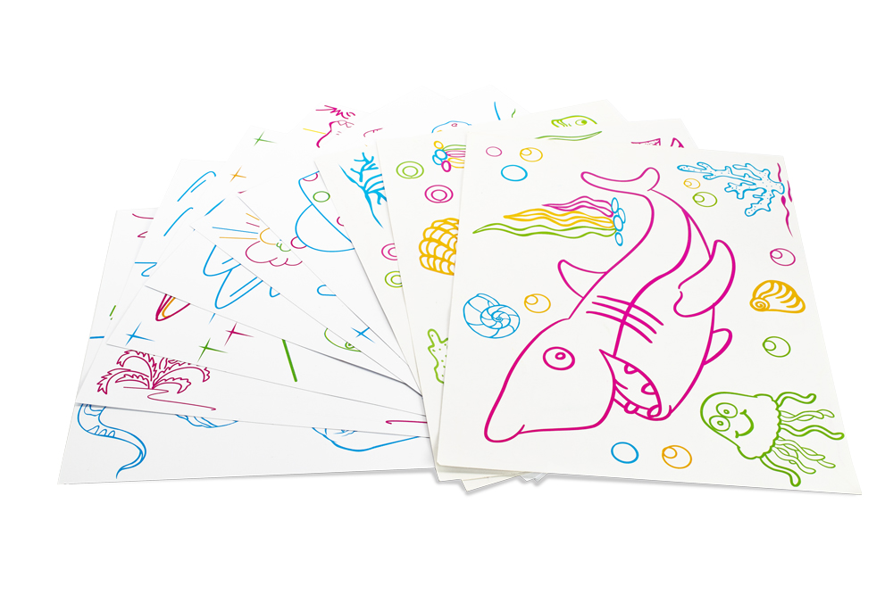 Carte de colorat magică - pensulă umplută cu apă și 4 imagini reutilizabile.