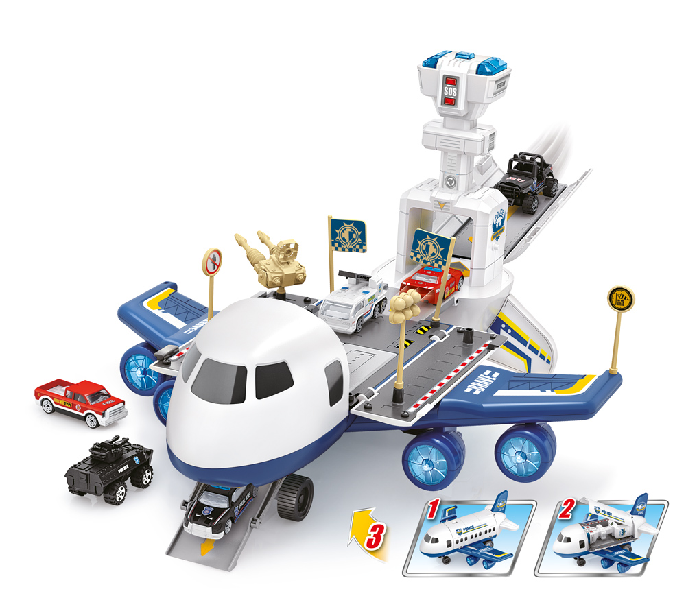 Szórakoztató multifunkciós repülőgépmodell nem csak fiúknak. Fejleszti a gyerekek figyelmét és képzelőerejét. A repülőgép törzse teljesen kinyitható, így egy rámpa és egy nagy játéktér jön létre.