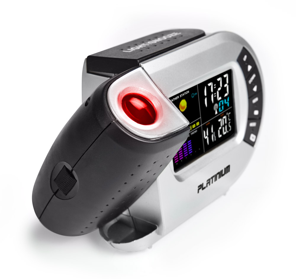 Multifunkciós ébresztőóra integrált időjárás állomással. A forgatható projektorral tetszőleges felületre (falra, plafonra, stb.) vetítheti ki a pontos időt.