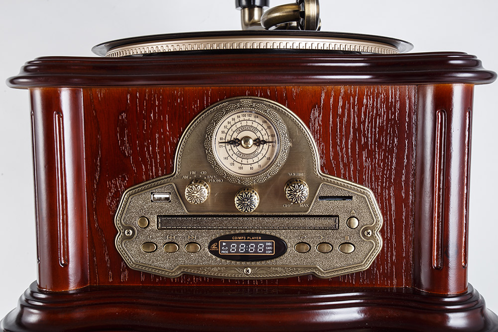 Pick-up cu mai multe viteze, telecomandă, player CD/MP3, radio.