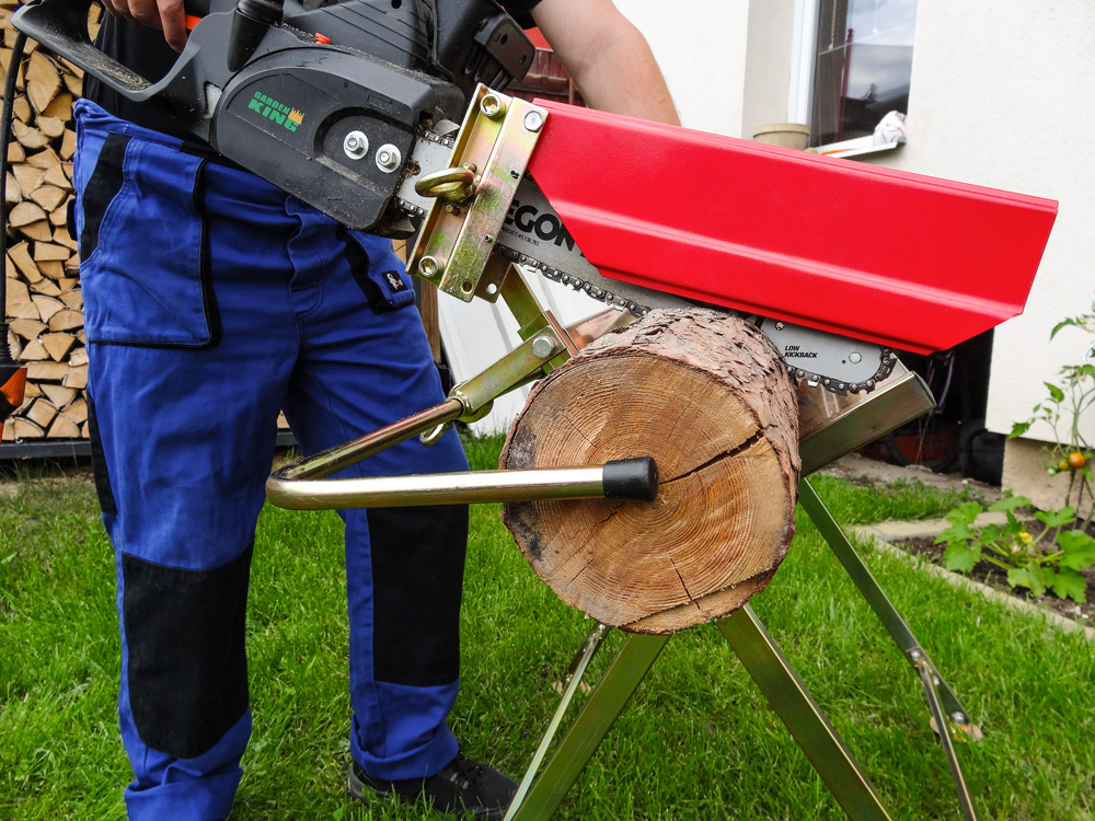 A fűrészbak láncfűrésztartóval horganyzott profilokból készült, és tökéletes stabilitással rendelkezik. A láncfűrész védőburkolat nagyobb biztonságot és kényelmet nyújt munka közben. A másik keze szabad, így biztonságosabban foghatja a fát.