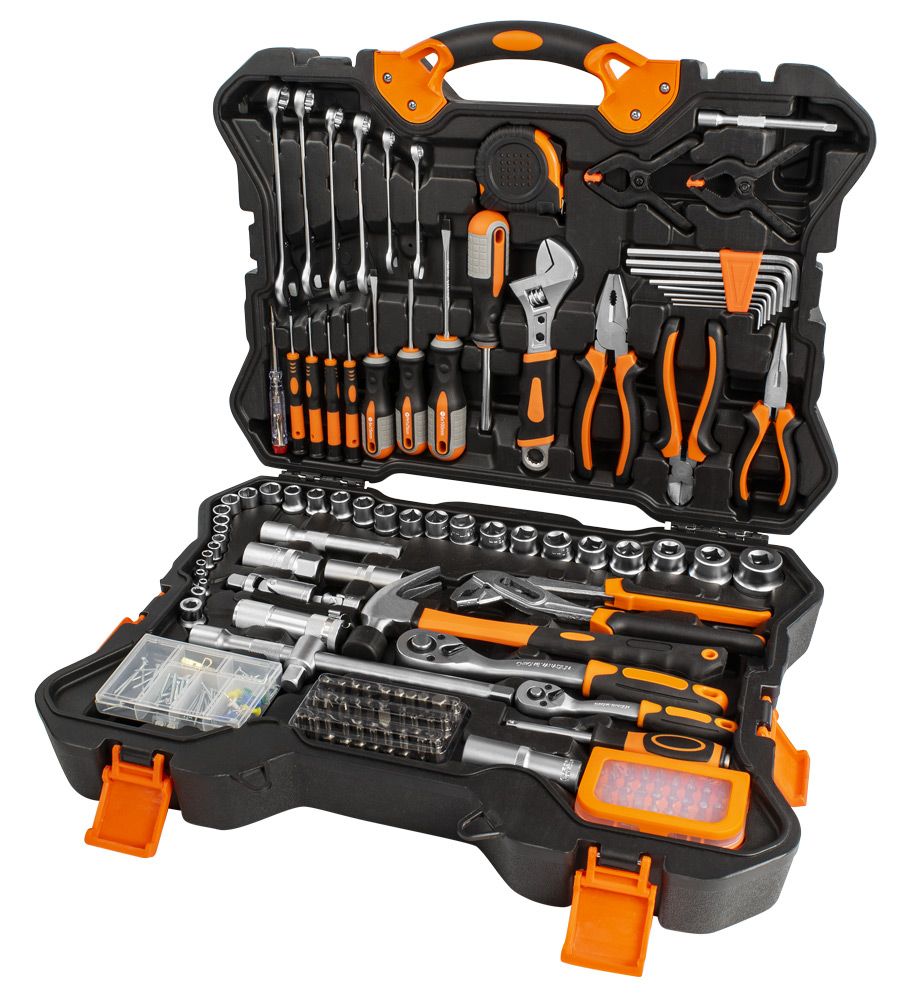 Szerszámok és tartozékok készlete minden ezermester számára praktikus kofferben.