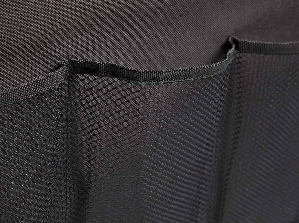 Az autós tároló doboz az alján található tépőzárnak köszönhetően szilárdan helyben marad, az oldalsó zsebekben pedig apróbb tárgyakat is jól áttekinthetően elhelyezhet. Ha nincs rá szükség, a doboz összecsukható és szinte alig foglal helyet.